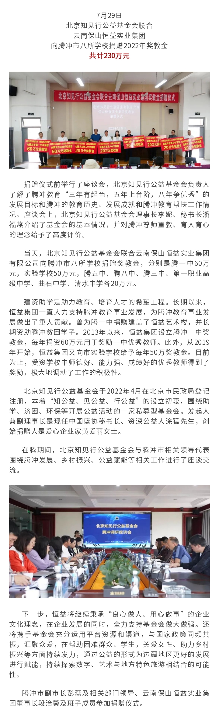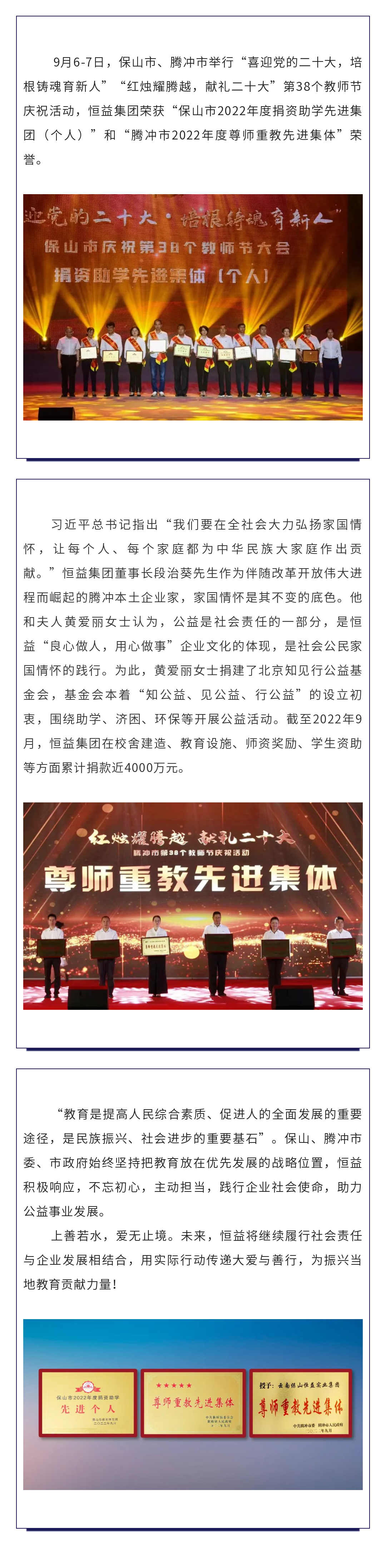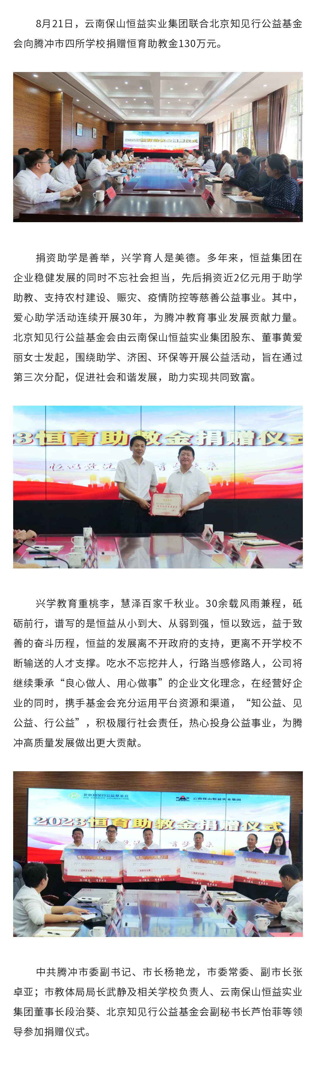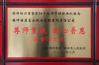 2018年9月10日,榜樣的力量暨第34個(gè)教師節(jié),恒益集團(tuán)向中共騰沖市委市政府捐資15萬(wàn)元;