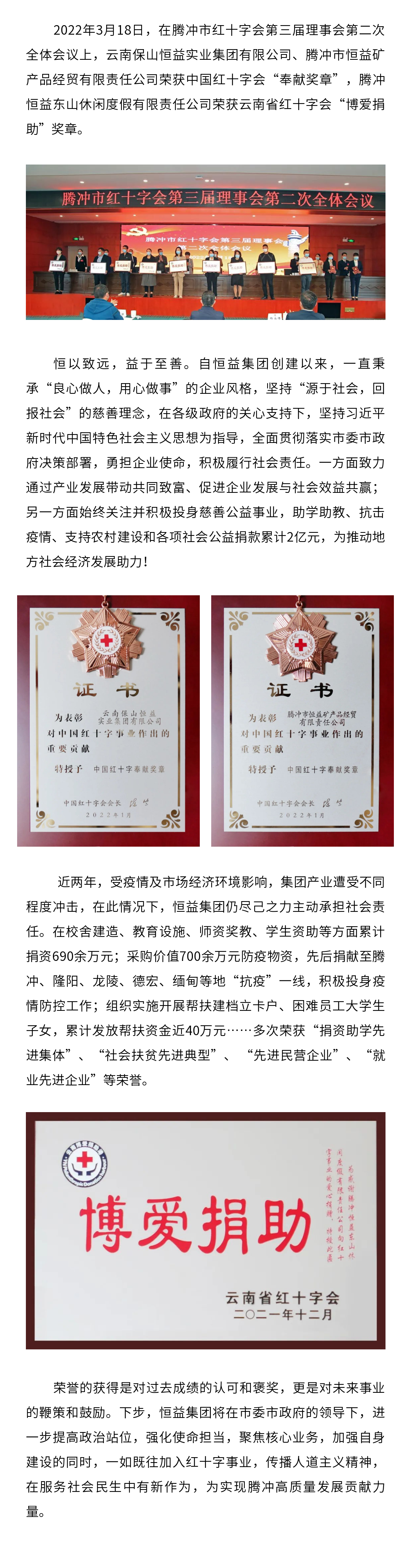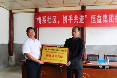 2018年6月1日,為增進(jìn)社區(qū)發(fā)展,提升社區(qū)公共場(chǎng)所相關(guān)配套設(shè)施,恒益集團(tuán)向騰越鎮(zhèn)玉璧社區(qū)芹菜塘自然村捐贈(zèng)4萬(wàn)元;