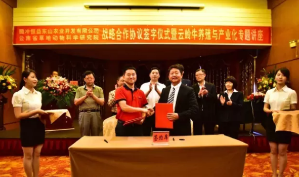 在出席儀式的市政領(lǐng)導(dǎo)、與會(huì)嘉賓和集團(tuán)高管的見證下,段治葵董事長(zhǎng)與黃必志院長(zhǎng)簽訂了開發(fā)東山旅游度假區(qū)歷史性的戰(zhàn)略合作協(xié)議。并聘請(qǐng)黃必志院長(zhǎng)為騰沖恒益東山農(nóng)業(yè)開發(fā)有限公司首席專家,聘請(qǐng)孫寶忠研究員為騰沖恒益東山農(nóng)業(yè)開發(fā)有限公司牛肉系列產(chǎn)品研發(fā)首席專家。這一重大戰(zhàn)略合作協(xié)議的簽訂及兩位國內(nèi)業(yè)界知名專家的加入,為開發(fā)東山旅游度假區(qū)落地實(shí)施提供了堅(jiān)實(shí)的學(xué)術(shù)保障和技術(shù)支持。