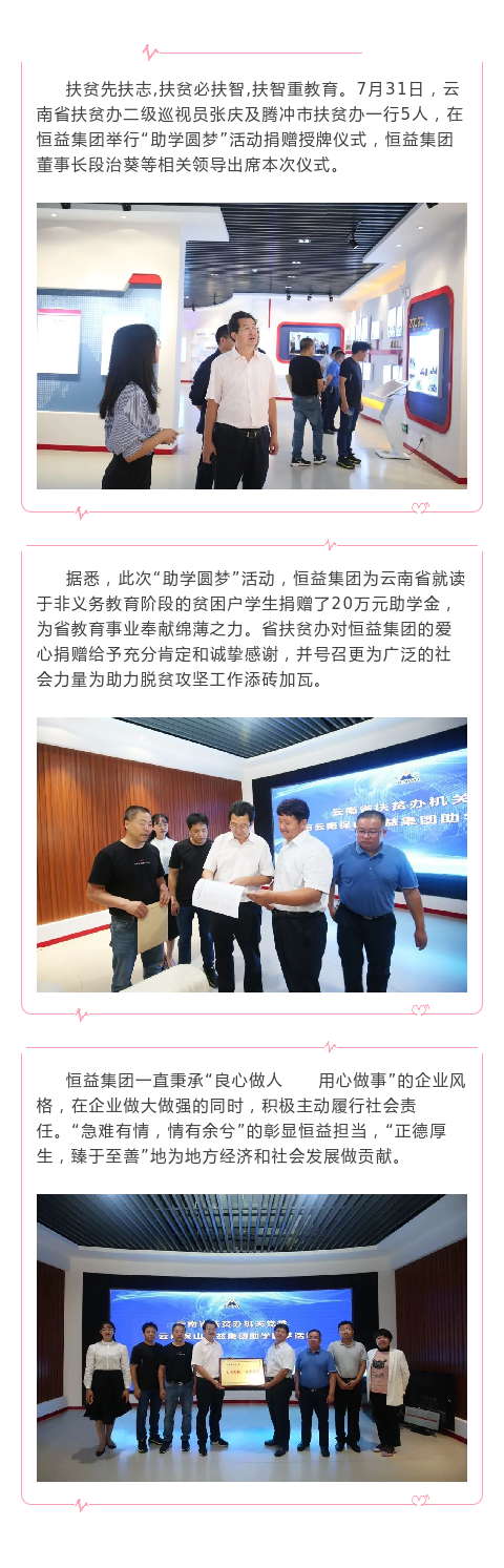 恒益集團捐資助學(xué) 情系教育 來源: 瀏覽量:7355 日期:2020-08-03 分享到: 上一篇:熱烈祝賀云南保山恒益實業(yè)集團榮獲“2020年度云南省非公企業(yè)100強”殊榮 下一篇:恒益集團組織召開內(nèi)部借款管理辦法實施培訓(xùn)暨全面預(yù)算信息化項目啟動會