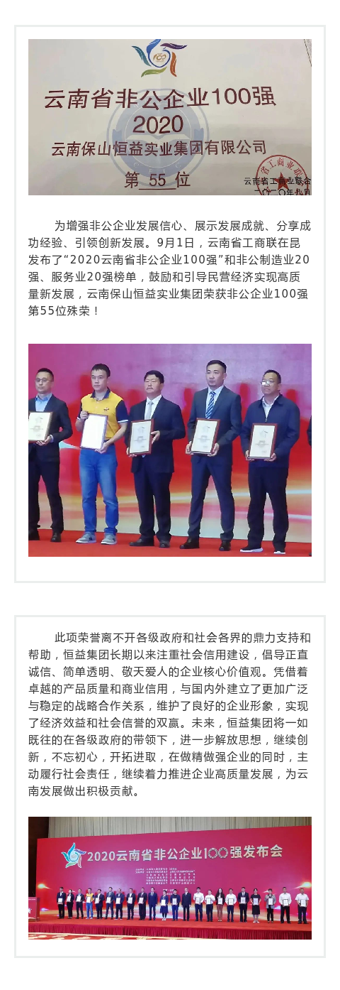 熱烈祝賀云南保山恒益實業(yè)集團榮獲“2020年度云南省非公企業(yè)100強”殊榮 來源: 瀏覽量:7301 日期:2020-09-01 分享到: 上一篇:云南省政協(xié)調(diào)研組一行蒞騰到恒益東山牧場考察調(diào)研 下一篇:恒益集團捐資助學(xué) 情系教育