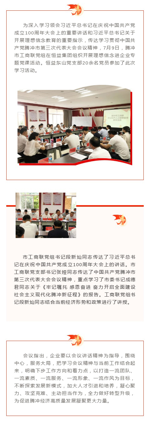 加強(qiáng)理想信念教育 促進(jìn)恒益更高質(zhì)量發(fā)展 來源: 瀏覽量:6239 日期:2021-07-12 分享到: 上一篇:恒益集團(tuán)第二屆董事會第三次會議暨2021年半年度經(jīng)濟(jì)運(yùn)行分析會圓滿舉行 下一篇:“云南省騰沖市中藥材產(chǎn)業(yè)科技特派團(tuán)” 項(xiàng)目啟動會順利召開,助推騰沖中藥材產(chǎn)業(yè)發(fā)展