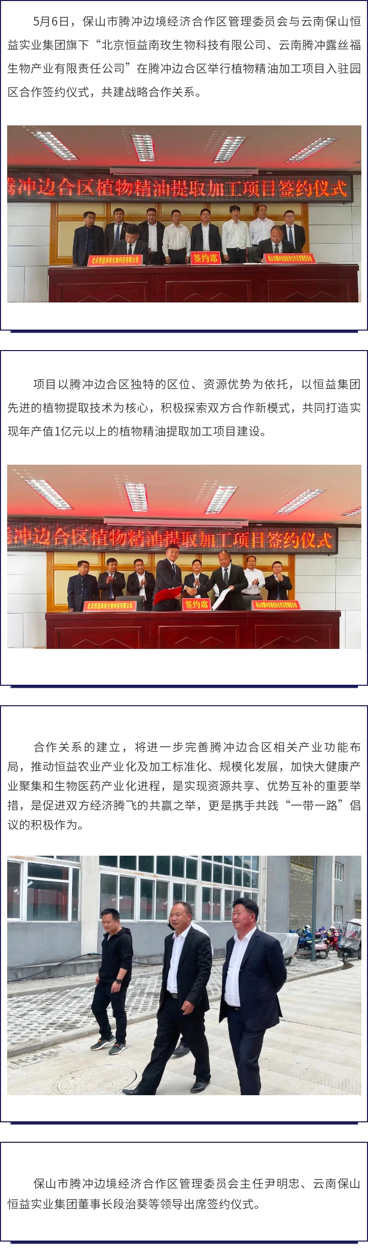 保山市騰沖邊境經(jīng)濟合作區(qū)管理委員會與云南保山恒益實業(yè)集團簽訂項目合作協(xié)議 來源: 瀏覽量:6028 日期:2022-05-07 分享到: 上一篇:奮力拼搏展風采,攜手同心創(chuàng)佳績 下一篇:博學于文,約之以禮——恒益集團組織“國賓禮儀”主題專場培訓