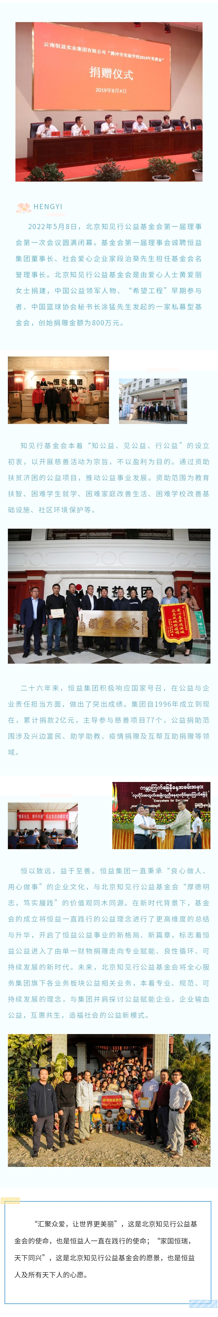 恒以致遠(yuǎn) 益于至善——恒益攜手知見行,共譜公益新篇章 來源: 瀏覽量:5845 日期:2022-05-27 分享到: 上一篇:共創(chuàng)共榮,互惠共通——騰沖翡翠文化創(chuàng)意產(chǎn)業(yè)園項(xiàng)目交流會圓滿召開 下一篇:鑄牢防線,防患未然