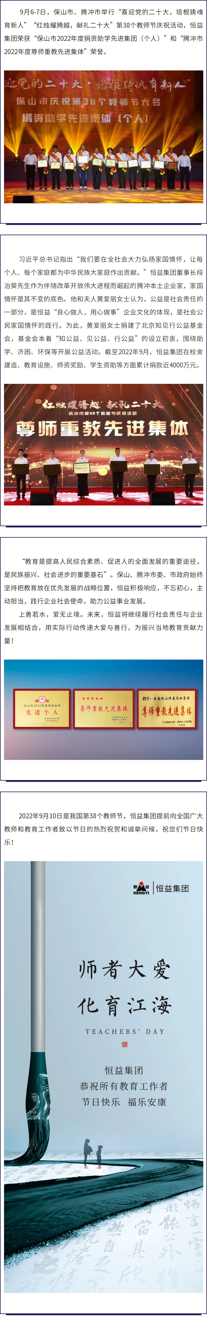 喜訊│恒益集團(tuán)榮獲捐資助學(xué)、尊師重教先進(jìn)集體(個(gè)人) 來(lái)源: 瀏覽量:5425 日期:2022-09-09 分享到: 上一篇:恒益集團(tuán)組織開展新聞寫作專題培訓(xùn) 下一篇:知見行公益基金會(huì)聯(lián)合恒益集團(tuán)向騰沖市八所學(xué)校捐贈(zèng)230萬(wàn)元獎(jiǎng)教金