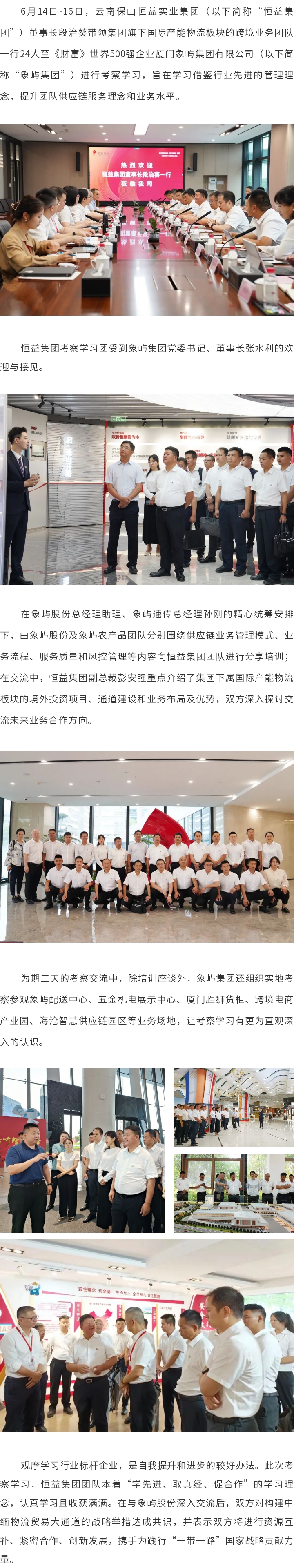 外出考察拓思路 學(xué)習(xí)借鑒促提升 ——恒益集團(tuán)董事長(zhǎng)段治葵帶團(tuán)隊(duì)赴廈門(mén)象嶼集團(tuán)考察學(xué)習(xí) 來(lái)源: 瀏覽量:5209 日期:2023-06-19 分享到: 上一篇:騰沖玉文化論壇成功舉辦 跟著故宮博物院文博專家解碼清代宮廷玉器 下一篇:恒益集團(tuán)文旅康養(yǎng)地產(chǎn)板塊丨以培代訓(xùn) 著力強(qiáng)化素質(zhì) 提升工作效能