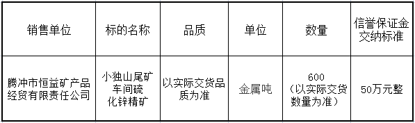 騰沖市恒益礦產(chǎn)品經(jīng)貿有限責任公司關于鋅精礦競價銷售公告(202305)號