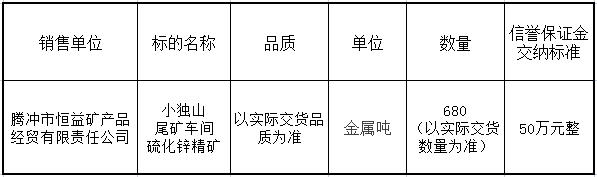 騰沖市恒益礦產(chǎn)品經(jīng)貿(mào)有限責(zé)任公司關(guān)于鋅精礦競價(jià)銷售公告(202307)號(hào)