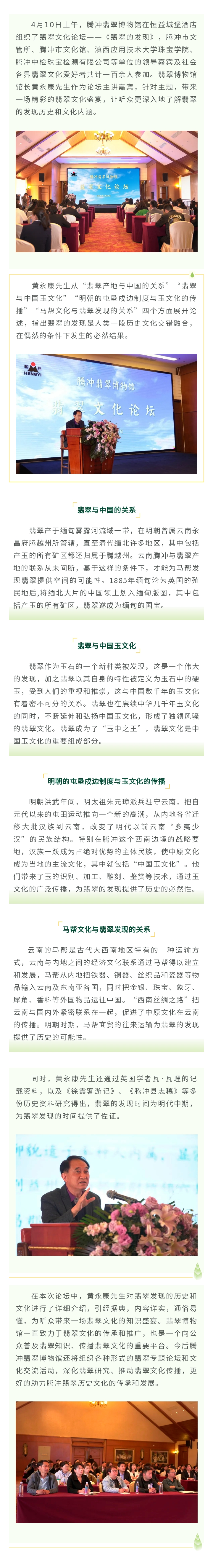 騰沖翡翠博物館舉辦《翡翠的發(fā)現(xiàn)》 專題文化論壇 來源: 瀏覽量:3968 日期:2024-04-10 分享到: 上一篇:云南保山恒益實(shí)業(yè)集團(tuán)有限公司與云南保山產(chǎn)業(yè)園區(qū)管理委員會(huì)簽訂戰(zhàn)略合作協(xié)議 下一篇:恒益杯“綠美春城·昆明統(tǒng)戰(zhàn)行”“綠美春城農(nóng)工行”定向活動(dòng)在昆明順利舉行