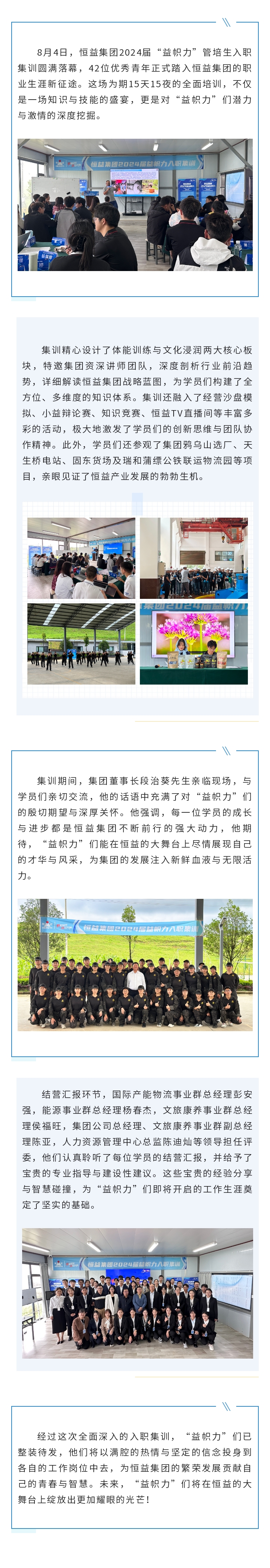 恒星耀夢 益往無前丨恒益集團2024屆“益幟力”入職集訓圓滿結束 來源: 瀏覽量:3913 日期:2024-08-06 分享到: 上一篇:恒益集團攜手北京知見行公益基金會捐贈150萬元恒育助教金 下一篇:馬來西亞-中國(云南)貿易投資推介會在昆隆重舉行