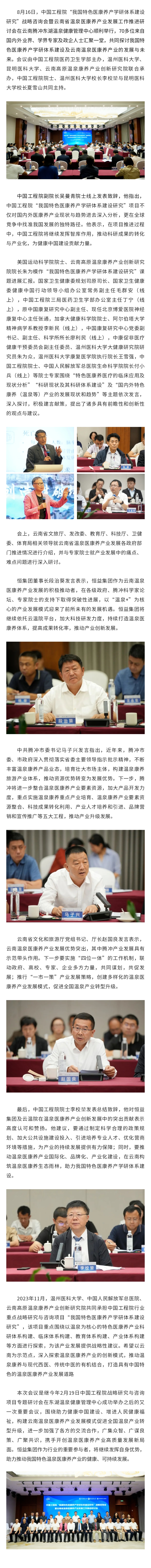 中國(guó)工程院“我國(guó)特色醫(yī)康養(yǎng)產(chǎn)學(xué)研體系建設(shè)研究”戰(zhàn)略咨詢會(huì)暨云南省溫泉醫(yī)康養(yǎng)產(chǎn)業(yè)發(fā)展工作推進(jìn)研討會(huì)順利舉行