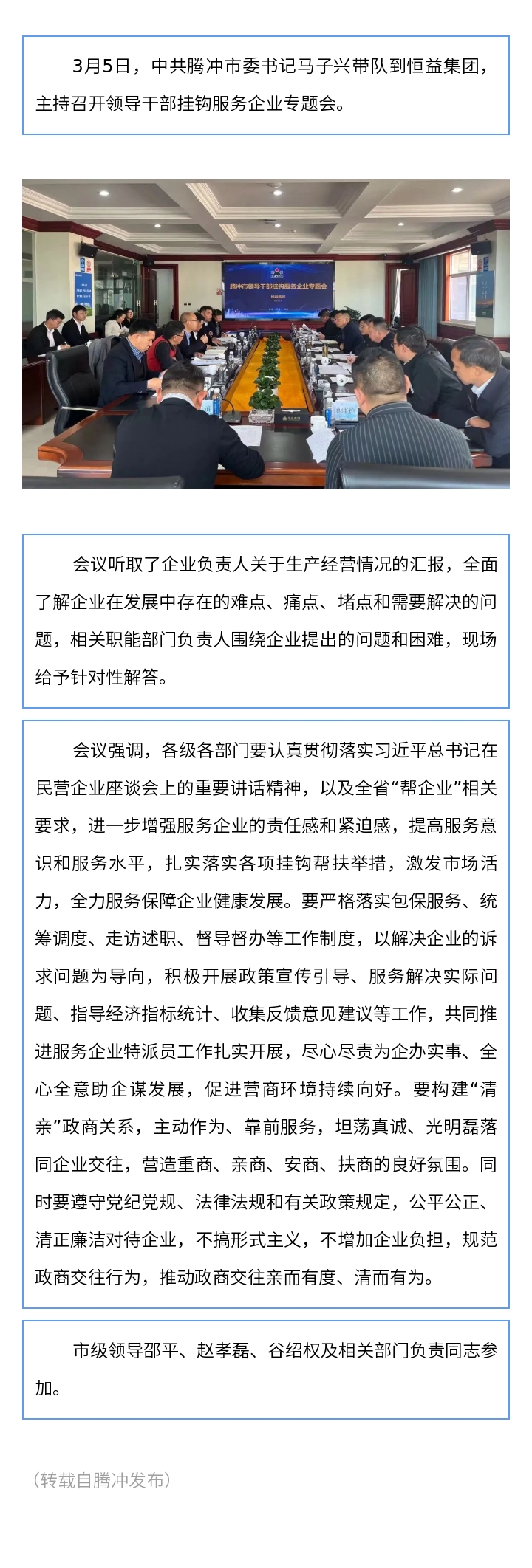 騰沖召開領(lǐng)導(dǎo)干部掛鉤服務(wù)企業(yè)專題會 來源: 瀏覽量:3291 日期:2025-03-06 分享到: 上一篇:騰沖海關(guān)機關(guān)黨委、騰沖機場黨委及騰沖恒益東山黨支部聯(lián)誼主題黨日活動圓滿舉行 下一篇:云南省商務(wù)廳副廳長譚偉一行蒞臨恒益集團調(diào)研指導(dǎo)