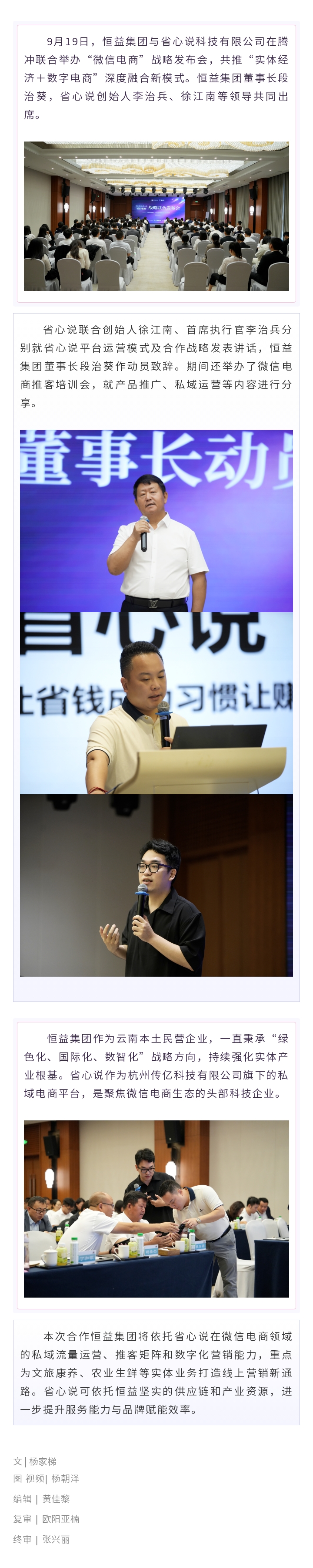 恒益集團與省心說科技達成合作 共筑微信電商新生態(tài) 來源: 瀏覽量:1196 日期:2025-09-19 分享到: 上一篇:榮登雙榜!恒益集團榮獲2025云南民企百強第30位、服務業(yè)20強第8位 下一篇:喜訊丨恒益集團榮膺2025年“騰沖市教育事業(yè)高質量發(fā)展先進集體”稱號