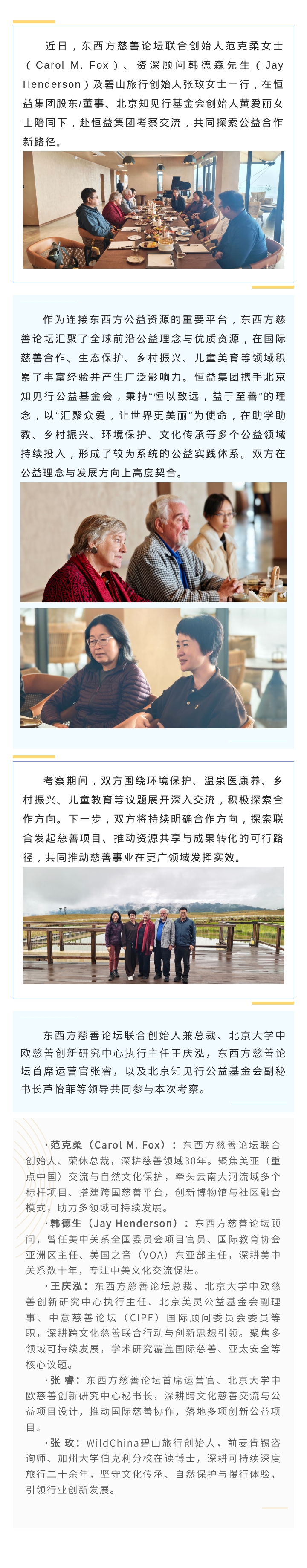 東西方慈善論壇聯(lián)合創(chuàng)始人一行到訪恒益集團(tuán) 共探公益合作新路徑 來源: 瀏覽量:281 日期:2025-11-14 分享到: 上一篇:恒益集團(tuán)“薪火計劃3.0”視頻創(chuàng)意大賽公開評審圓滿落幕 以創(chuàng)意賦能產(chǎn)品傳播 下一篇:北京知見行公益基金會獲評“3A級社會組織”