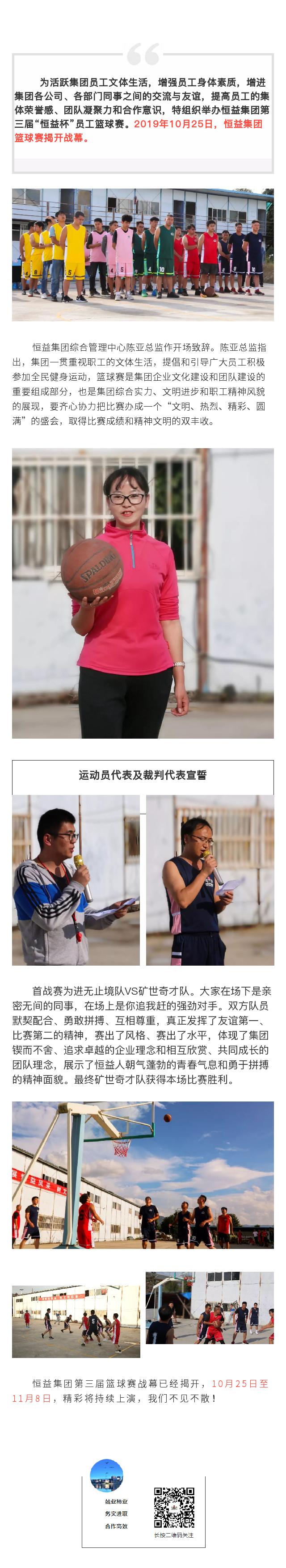 恒益集團(tuán)第三屆籃球賽揭開戰(zhàn)幕 來源: 瀏覽量:7940 日期:2019-10-25 分享到: 上一篇:蒙古第八批高中級領(lǐng)導(dǎo)干部考察團(tuán)蒞臨高黎貢文化創(chuàng)意產(chǎn)業(yè)園區(qū)參觀考察 下一篇:緬甸聯(lián)邦商務(wù)部長吳丹敏等“緬中邊境經(jīng)濟(jì)合作區(qū)中央委員會”領(lǐng)導(dǎo)調(diào)研甘拜地邊境經(jīng)濟(jì)合作區(qū)項(xiàng)目