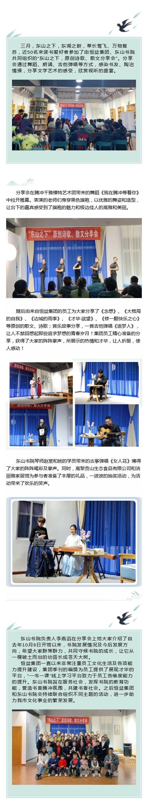“東山之下,原創(chuàng)詩歌、散文分享會”在東山書院隆重舉行 來源: 瀏覽量:6858 日期:2021-03-09 分享到: 上一篇:恒益集團掛牌“騰沖市對外友好協(xié)會文化交流基地” 下一篇:國內(nèi)第一本系統(tǒng)介紹翡翠文化形成與發(fā)展歷程的圖書——《翡翠簡史》在云南騰沖正式發(fā)行