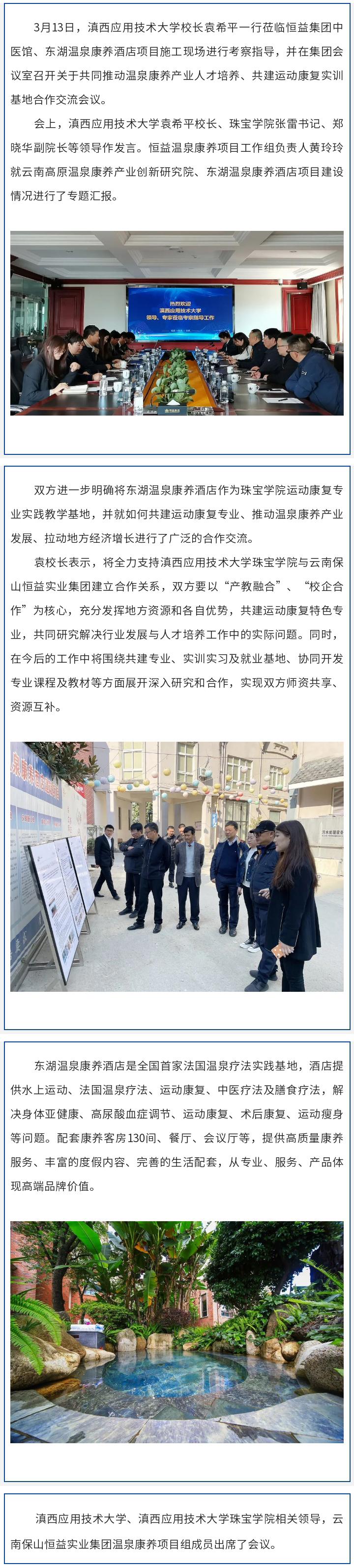 校企合作,共推溫泉康養(yǎng)產(chǎn)業(yè)發(fā)展 來源: 瀏覽量:5717 日期:2022-03-15 分享到: 上一篇:恒益集團三家公司榮獲紅十字會表彰 下一篇:云南保山恒益實業(yè)集團與廣西北部灣國際港務(wù)集團簽訂戰(zhàn)略合作協(xié)議
