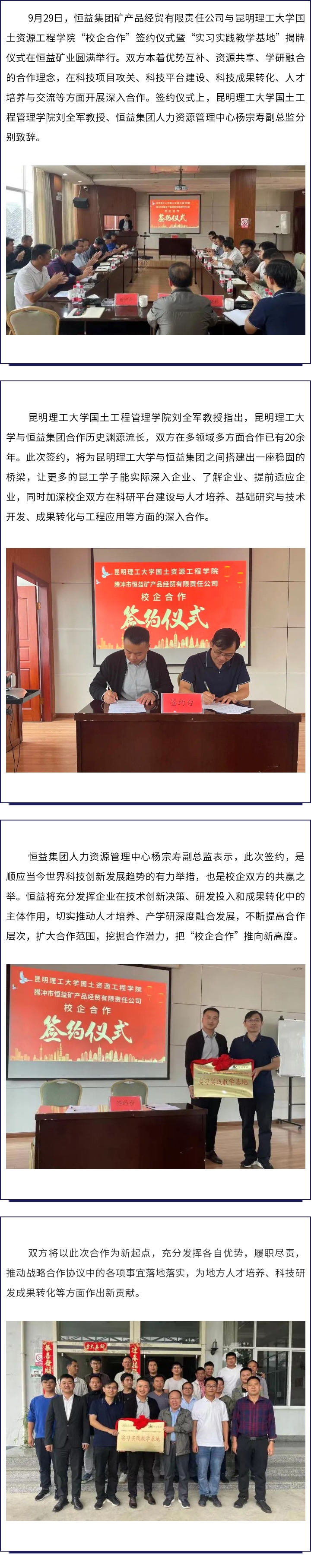 恒益集團(tuán)與昆明理工大學(xué)簽署校企合作協(xié)議 來源: 瀏覽量:5490 日期:2022-09-30 分享到: 上一篇:騰沖市中藥材協(xié)會(huì)2022年座談會(huì)順利召開 下一篇:校企合作譜新篇,協(xié)同育人共發(fā)展
