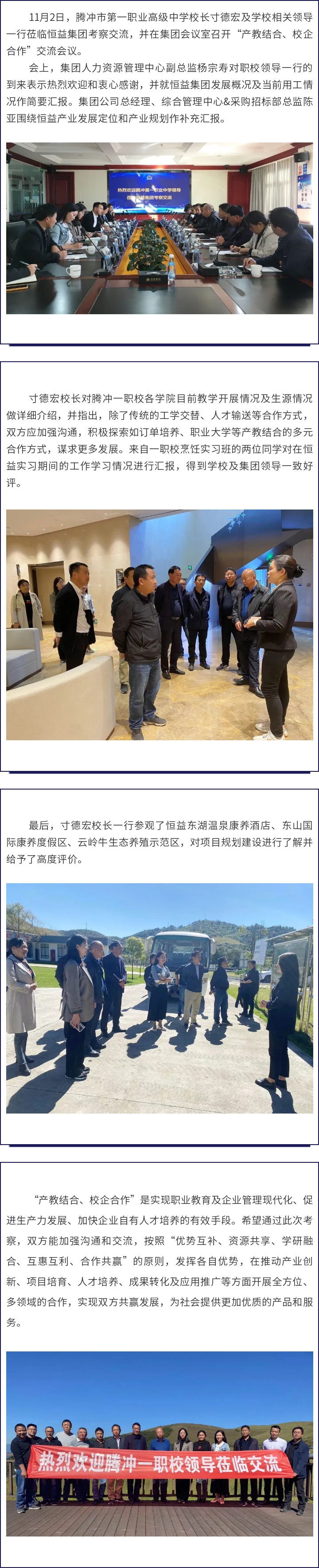 騰沖市第一職業(yè)高級中學(xué)領(lǐng)導(dǎo)一行蒞臨恒益集團(tuán)考察交流 來源: 瀏覽量:5885 日期:2022-11-02 分享到: 上一篇:恒益又一礦山破土開工! 下一篇:騰沖市中藥材協(xié)會2022年座談會順利召開