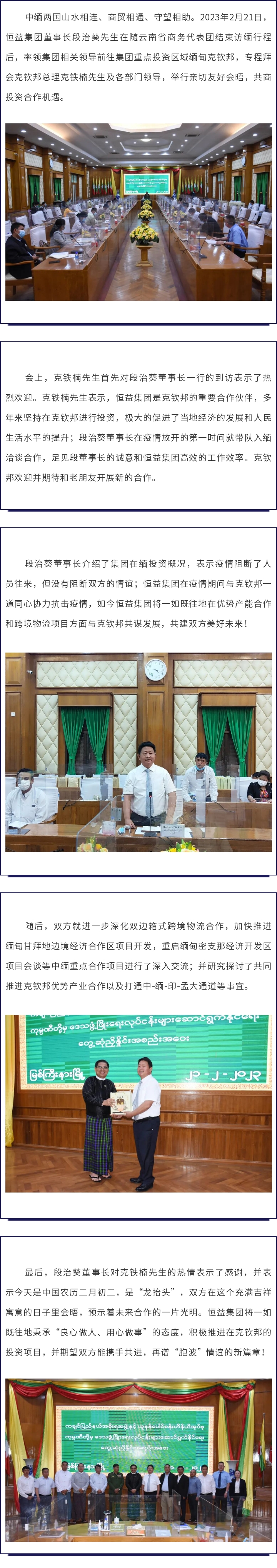 “新年新開局,共話胞波情”——恒益集團(tuán)董事長(zhǎng)拜訪克欽邦領(lǐng)導(dǎo)、共謀合作新篇章 來(lái)源: 瀏覽量:5646 日期:2023-02-22 分享到: 上一篇:國(guó)家肉牛產(chǎn)業(yè)技術(shù)體系專家團(tuán)隊(duì)蒞臨恒益農(nóng)業(yè)調(diào)研指導(dǎo)“云嶺牛”全產(chǎn)業(yè)鏈發(fā)展 下一篇:鼓蕩激情揚(yáng)征棹 一路輕舟乘東風(fēng)