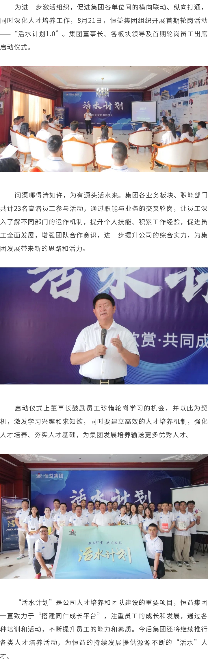 恒益集團(tuán)組織開(kāi)展輪崗項(xiàng)目“活水計(jì)劃1.0” 來(lái)源: 瀏覽量:4363 日期:2023-08-22 分享到: 上一篇:喜訊│恒益集團(tuán)榮獲“尊師重教先進(jìn)集體”稱(chēng)號(hào) 下一篇:關(guān)于公開(kāi)騰沖縣固?hào)|鐵窯山鐵礦廠礦山開(kāi)采項(xiàng)目水土保持設(shè)施自主驗(yàn)收情況的通告