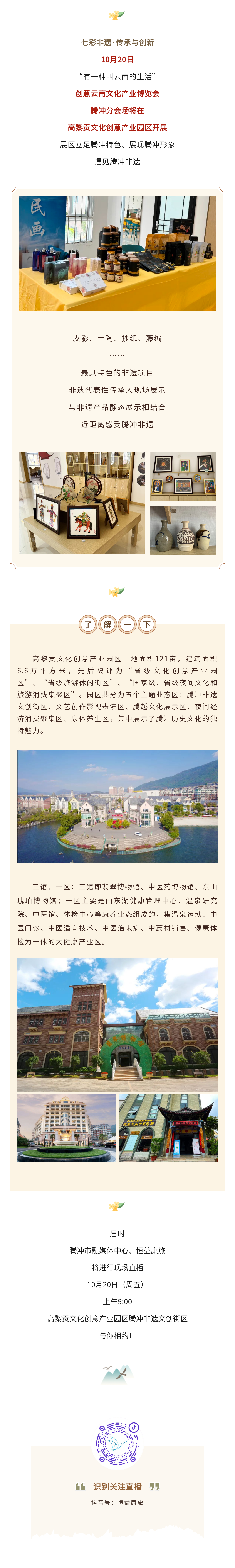 直播預(yù)熱丨文博會(huì)分會(huì)場(chǎng),相約騰沖高黎貢文化創(chuàng)意產(chǎn)業(yè)園區(qū) 來(lái)源: 瀏覽量:4083 日期:2023-10-19 分享到: 上一篇:云南文博會(huì),高黎貢文化創(chuàng)意產(chǎn)業(yè)園區(qū)展現(xiàn)騰沖多彩非遺文化 下一篇:快跟我來(lái),帶您去逛邊交會(huì)~