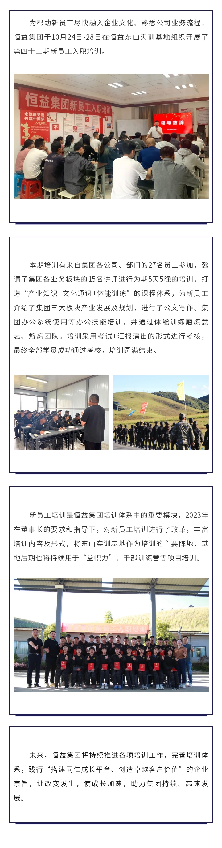 東山實(shí)訓(xùn)基地首期新員工培訓(xùn)圓滿結(jié)束 來源: 瀏覽量:4187 日期:2023-10-30 分享到: 上一篇:高黎貢文化創(chuàng)意產(chǎn)業(yè)園區(qū)為什么能在省級評選中脫穎而出 下一篇:情系學(xué)子 愛心助學(xué)| 恒益集團(tuán)聯(lián)合知見行公益基金會開展公益助學(xué)愛心活動