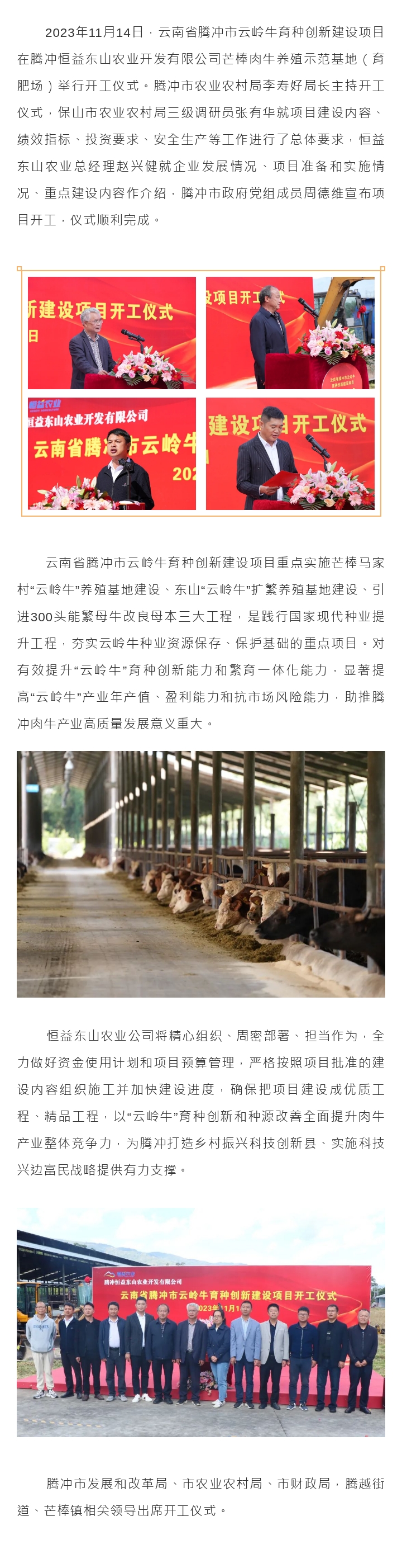 云南省騰沖市云嶺牛育種創(chuàng)新建設(shè)項(xiàng)目正式開工 來源: 瀏覽量:4279 日期:2023-11-14 分享到: 上一篇:騰馬激情開跑,恒益健兒展風(fēng)采 下一篇:騰沖市恒益礦產(chǎn)品經(jīng)貿(mào)有限責(zé)任公司滇灘鐵礦東排土場建設(shè)項(xiàng)目環(huán)境影響報(bào)告書公眾參與第一次信息公示