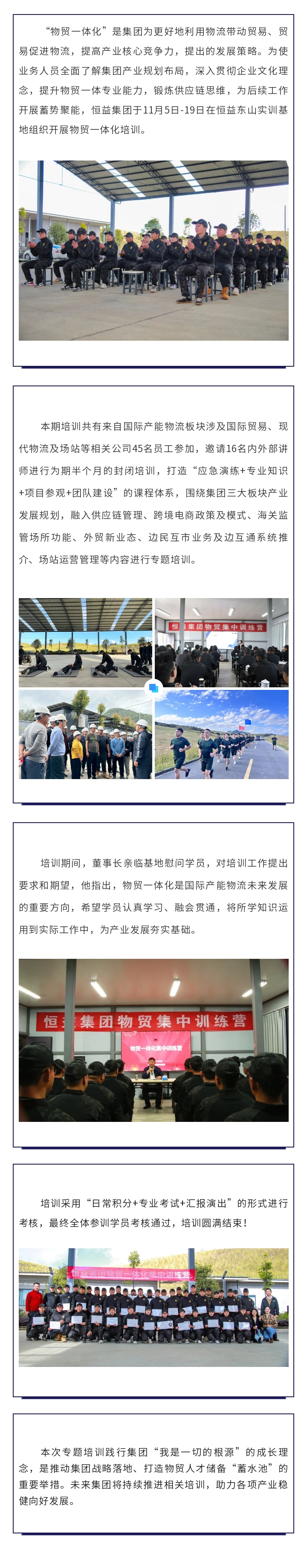 恒益集團(tuán)物貿(mào)一體化集中訓(xùn)練營(yíng)圓滿收官 來(lái)源: 瀏覽量:4172 日期:2023-11-20 分享到: 上一篇:大咖來(lái)了丨2023騰沖科學(xué)家論壇·大健康產(chǎn)業(yè)創(chuàng)新發(fā)展活動(dòng)院士導(dǎo)覽 下一篇:騰馬激情開(kāi)跑,恒益健兒展風(fēng)采