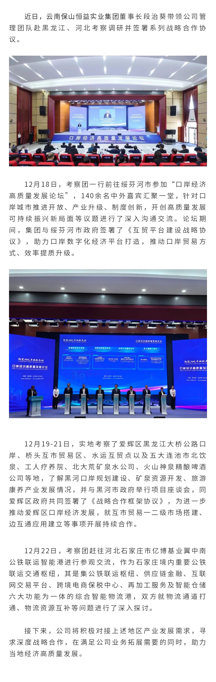 考察聯(lián)誼謀發(fā)展,合作共贏譜新篇 來源: 瀏覽量:4149 日期:2023-12-27 分享到: 上一篇:揚(yáng)帆正當(dāng)時 逐潮擊浪高——記保山市第二屆“興保人才獎”獲獎?wù)叨沃慰?/a> 下一篇:喜訊丨恒益集團(tuán)獲得“2023云南企業(yè)100強(qiáng)”等多項(xiàng)榮譽(yù)獎項(xiàng)
