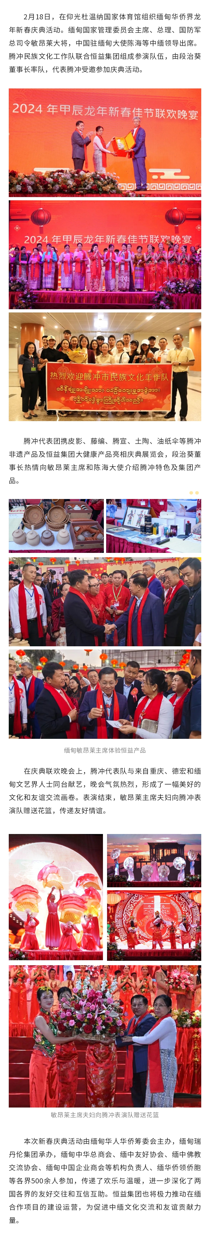 龍騰盛世,共舞新春丨恒益集團受邀參加緬甸華僑界龍年新春慶典 來源: 瀏覽量:4193 日期:2024-02-20 分享到: 上一篇:加快打造農(nóng)業(yè)生鮮產(chǎn)品供應(yīng)鏈平臺 帶動群眾增收致富 下一篇:恒益集團2024年新春賀詞