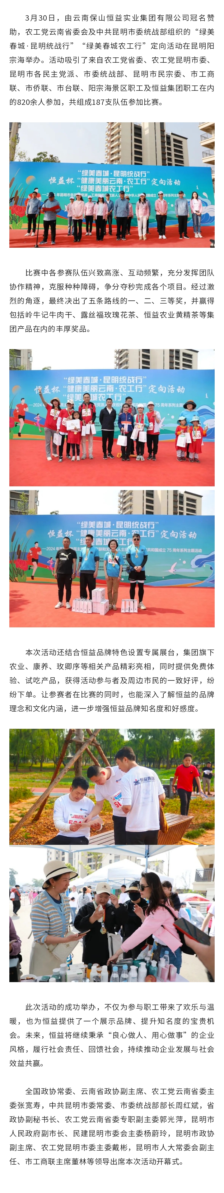 恒益杯“綠美春城·昆明統(tǒng)戰(zhàn)行”“綠美春城農(nóng)工行”定向活動(dòng)在昆明順利舉行 來源: 瀏覽量:3976 日期:2024-04-01 分享到: 上一篇:騰沖翡翠博物館舉辦《翡翠的發(fā)現(xiàn)》 專題文化論壇 下一篇:2024騰沖科學(xué)家論壇——“備戰(zhàn)巴黎奧運(yùn)會(huì) 高原訓(xùn)練和溫泉水療康復(fù)”圓桌對(duì)話暨項(xiàng)目研討會(huì)順利舉行