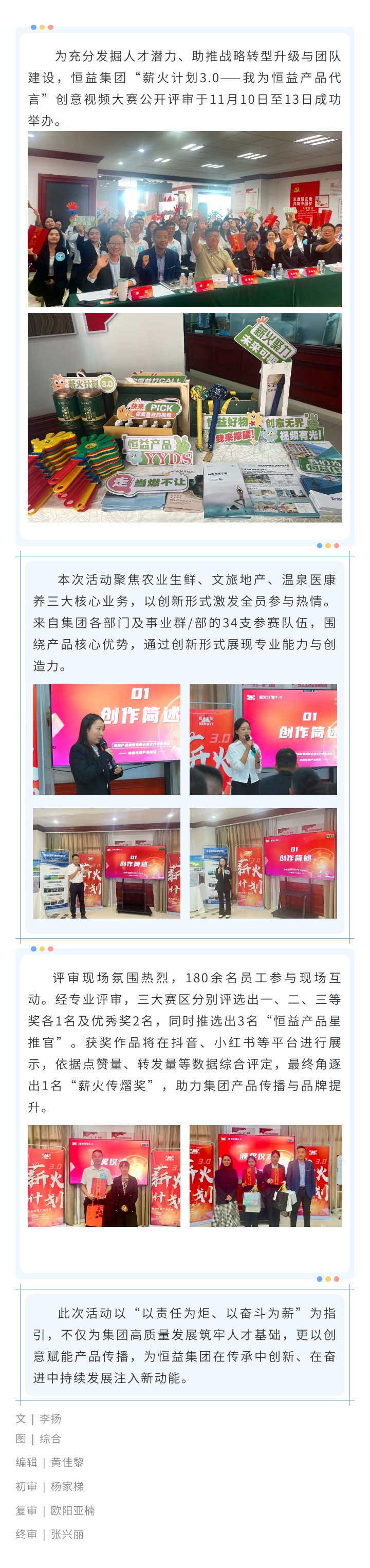 恒益集團“薪火計劃3.0”視頻創(chuàng)意大賽公開評審圓滿落幕 以創(chuàng)意賦能產(chǎn)品傳播 來源: 瀏覽量:305 日期:2025-11-16 分享到: 上一篇:恒益集團與云南財經(jīng)大學(xué)簽約授牌 共啟文旅育才新篇章 下一篇:東西方慈善論壇聯(lián)合創(chuàng)始人一行到訪恒益集團 共探公益合作新路徑